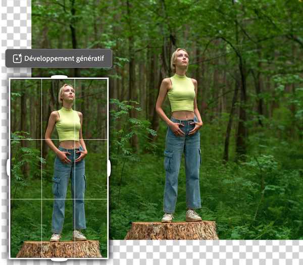 Intégration d’Adobe Firefly, l’outil d’IA générative intégrée. Découvrez des fonctionnalités telles que la génération d’image à partir de texte et ayez accès aux images d’Adobe Stock tombées dans le domaine public.